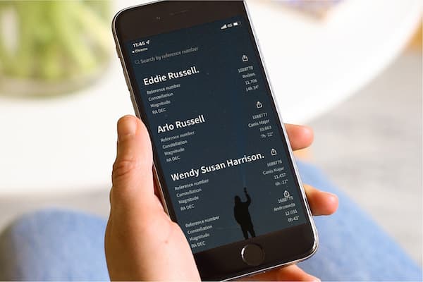 When you register a star with Star Name Registry, the most renowned registry in Canada, your star listing will be featured on our international star registry. Upon purchasing a gift package, your star's details will be visible on our mobile app for iPhone and Android within 24 hours, ensuring online visibility. Rest assured, the star coordinates are exclusively used once in our database, ensuring the distinctiveness of your chosen name!